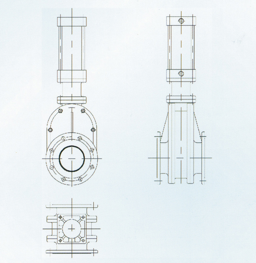 氣動出料閥設(shè)置與發(fā)送器物料出口處,發(fā)送器輸送時,該閥打開發(fā)送器輸送結(jié)束時,詼閥關(guān)閉。工作時,氣缸通過手帶動閥芯做回轉(zhuǎn)運動,從而打開或關(guān)閉閥門。