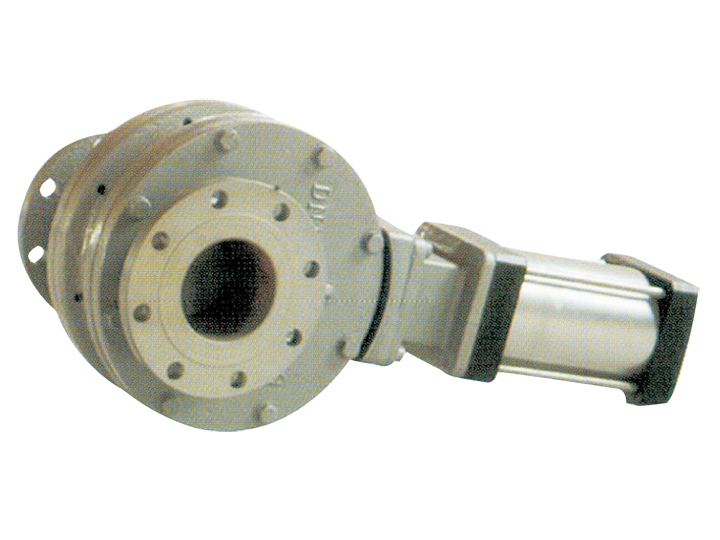 氣動出料閥設(shè)置與發(fā)送器物料出口處,發(fā)送器輸送時,該閥打開,發(fā)送器輸送結(jié)束時,該閥關(guān)閉。工作時,氣缸通過手柄帶動閥芯做回轉(zhuǎn)運動,從而打開或關(guān)閉閥門。